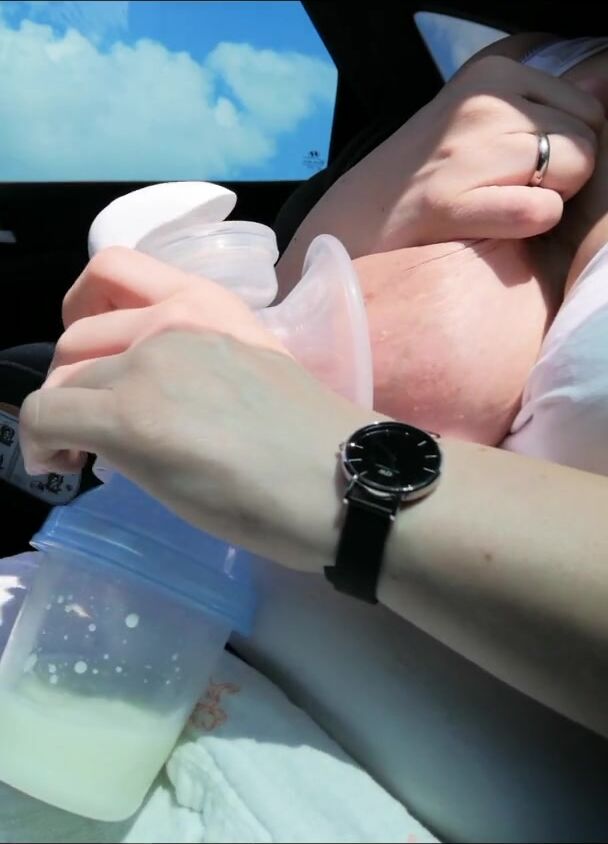 BANGING MY LARGE MILK MOUNDS EMPTY IN THE CAR
