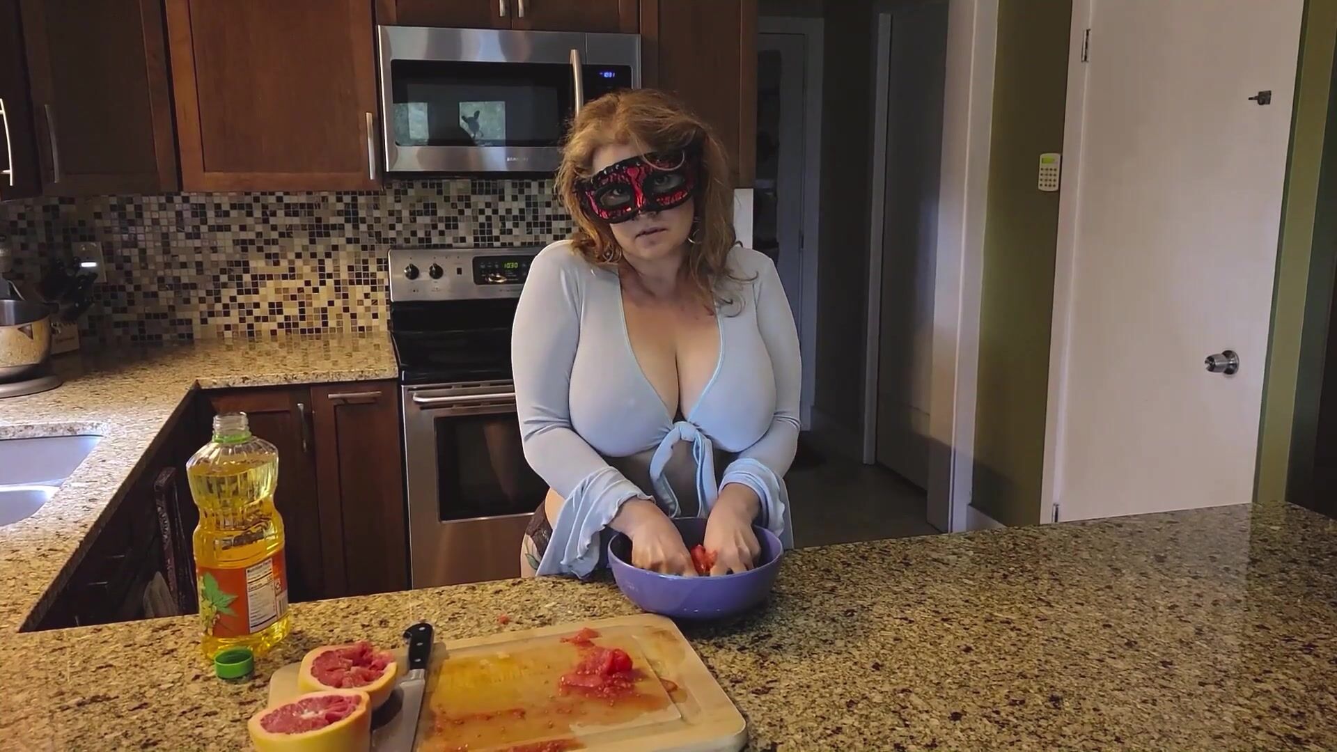 SLICING AND CRUSHING FOOD AND RUBBING IT INTO MY LARGE MOTHER I'D LIKE TO FUCK LOVE MUFFINS