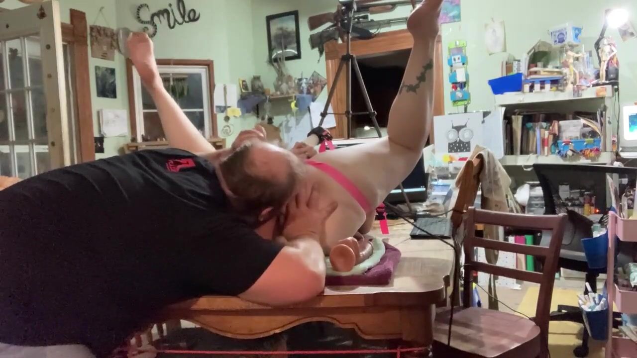 PINKY THONGED TO THE TABLE FACE UP FOR GREATER QUANTITY SADOMASOCHISM PLEASURE