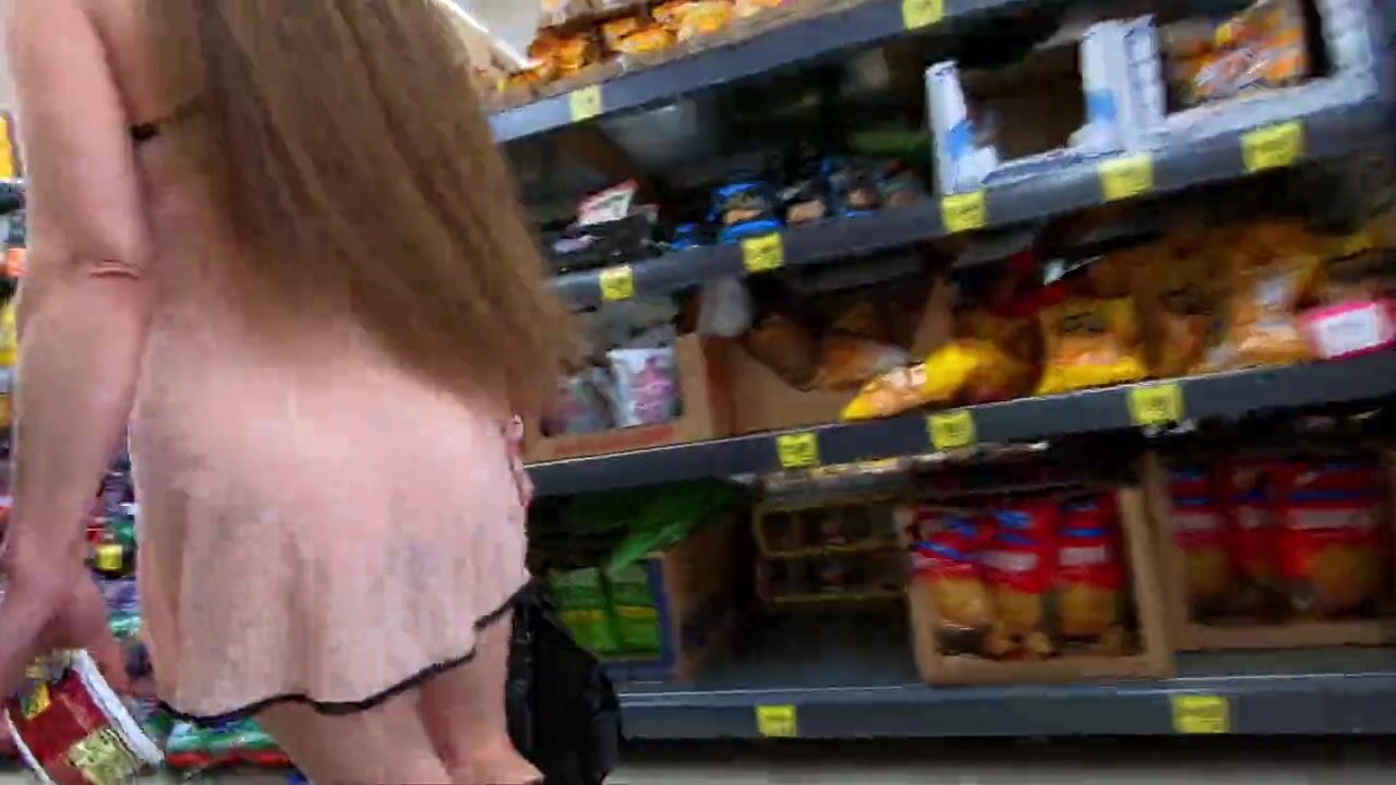 LONGPUSSY IN A SHEER MINI SUIT, BOOTY PLUGGED ON A WALK AND FOR A QUICK SHOP.
