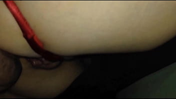 1453 - FRENCH SLUT, IN RED SATIN LINGERIE (SEXY NIGHTIE AND THONG), FUCKED DOGGYSTYLE IN HER SPANDEX PANTS