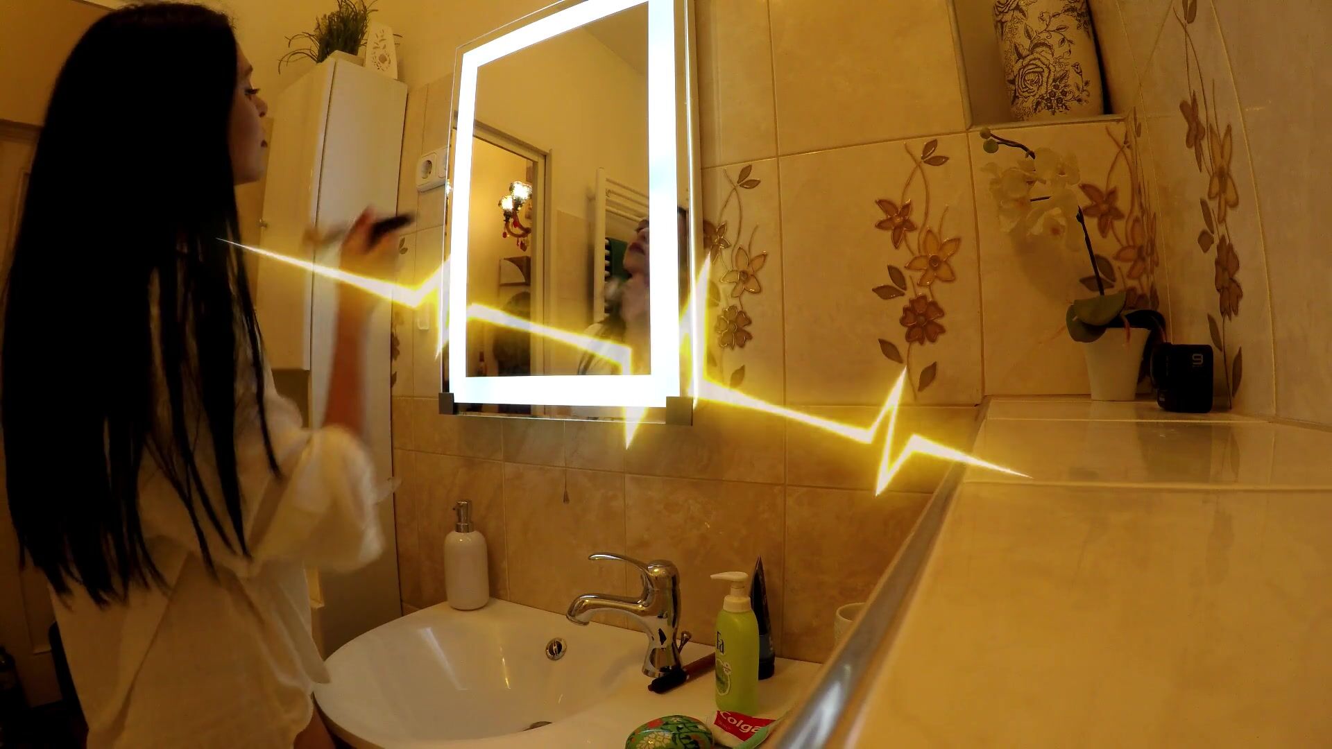 . Fake Lingerie Nude Try on Shooting of an Amateur Porn Director with a Hot Big Boobs Big Ass Beautiful Cute Brunette MILF at Home to Show Pussy and Ass. Sexy and Horny beautiful cute brunette MILF in a fake porn shooting with backstage.