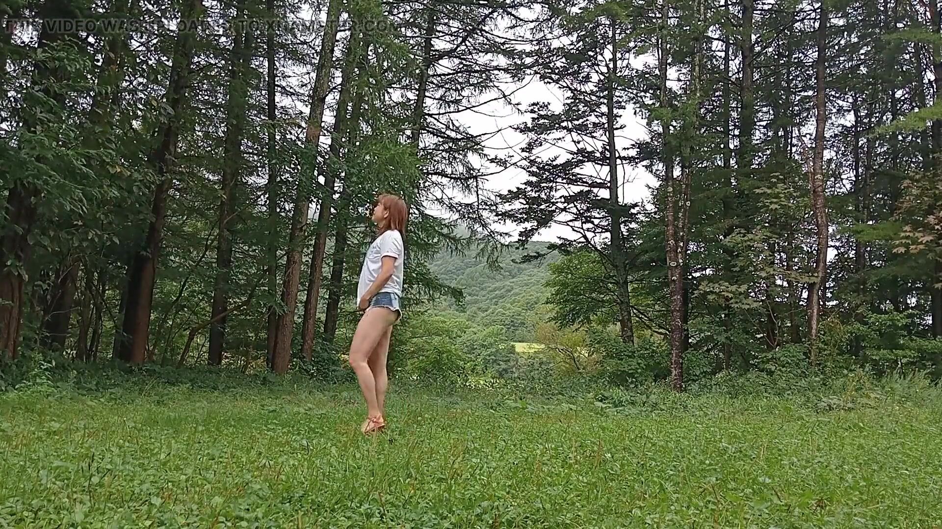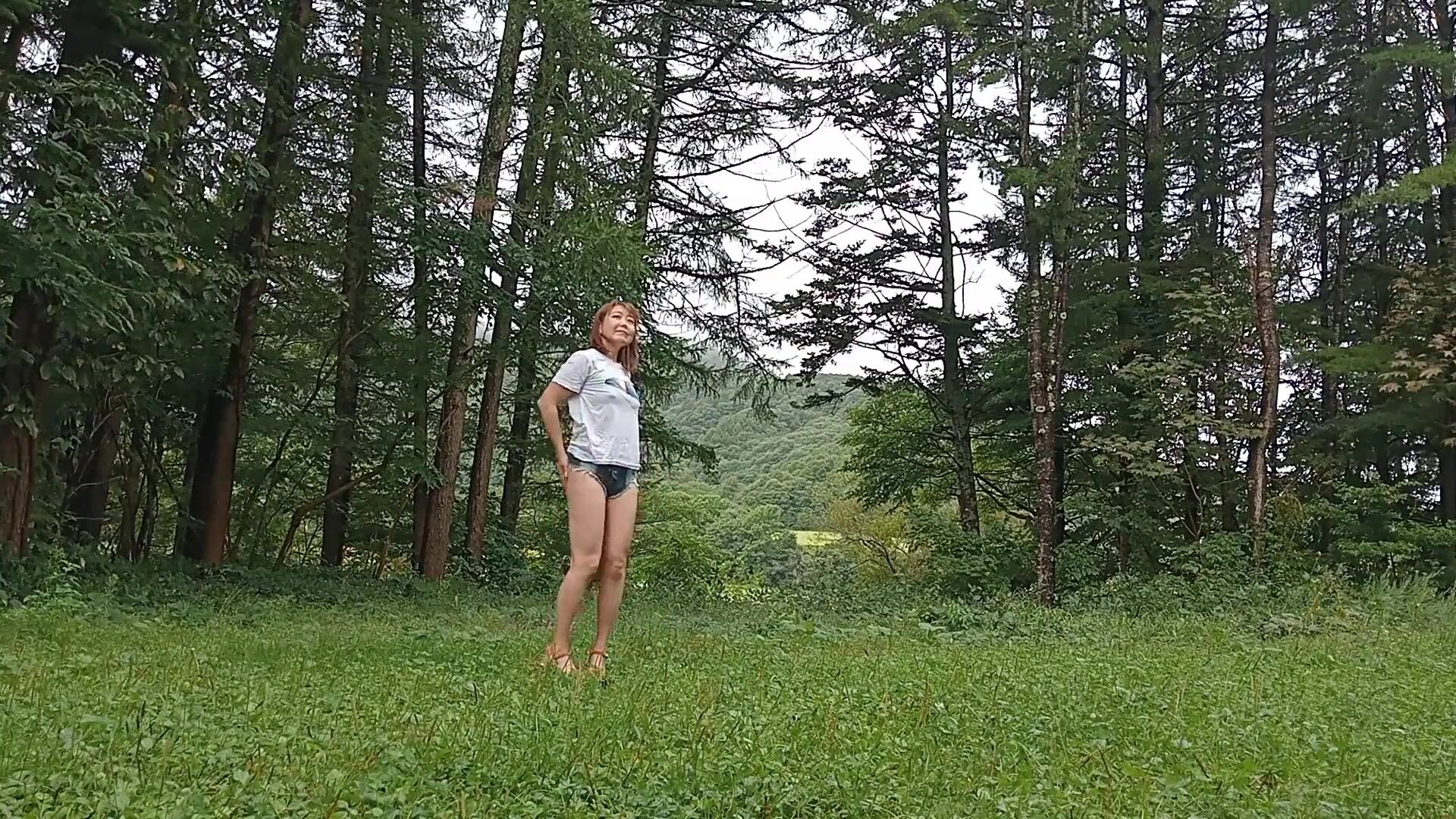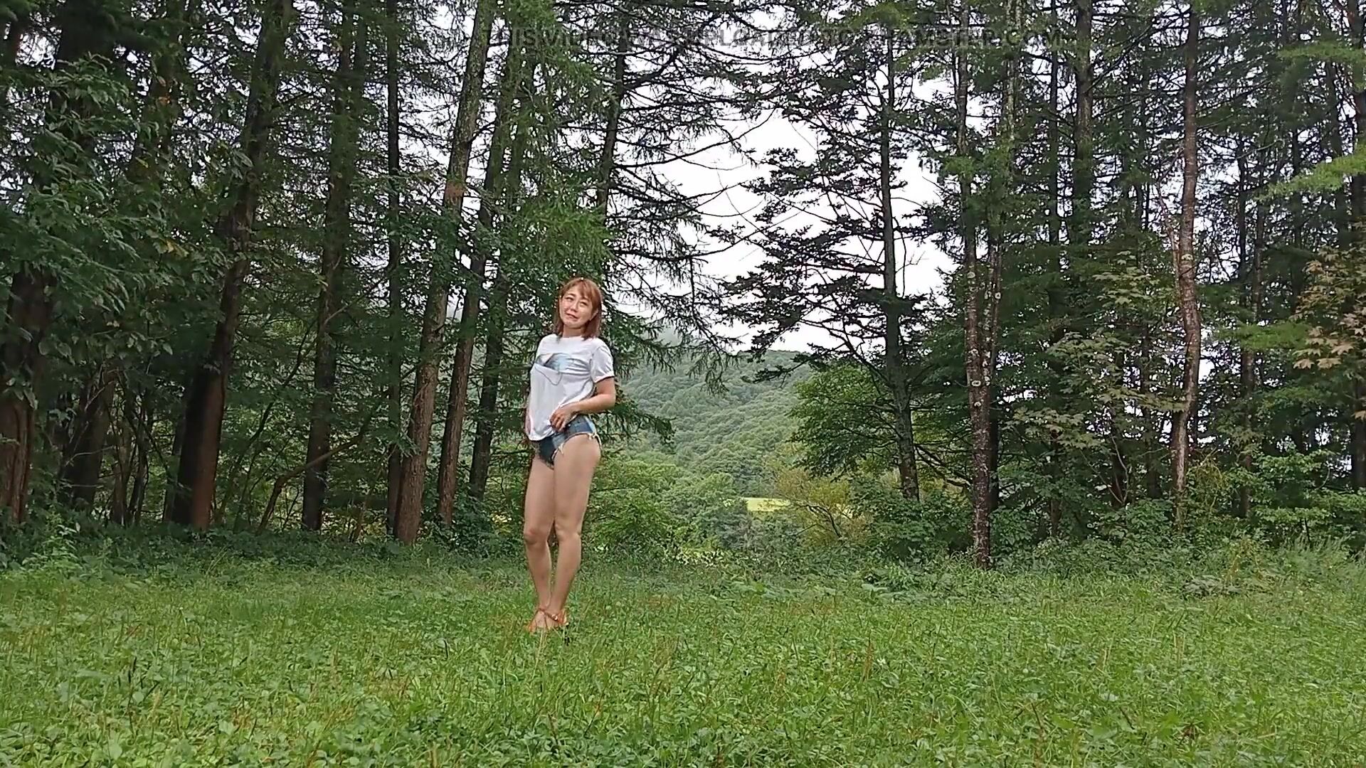 . This video was shot in Hokkaido, Japan. I wear sexy denim shorts and have the cameraman film me in them. Please take a look at the scene. These shorts have zippers to open up the buttocks and crotch. They are nice shorts and I would use them again for the shoot. It felt great to shoot in the beautiful green nature at the end of summer.