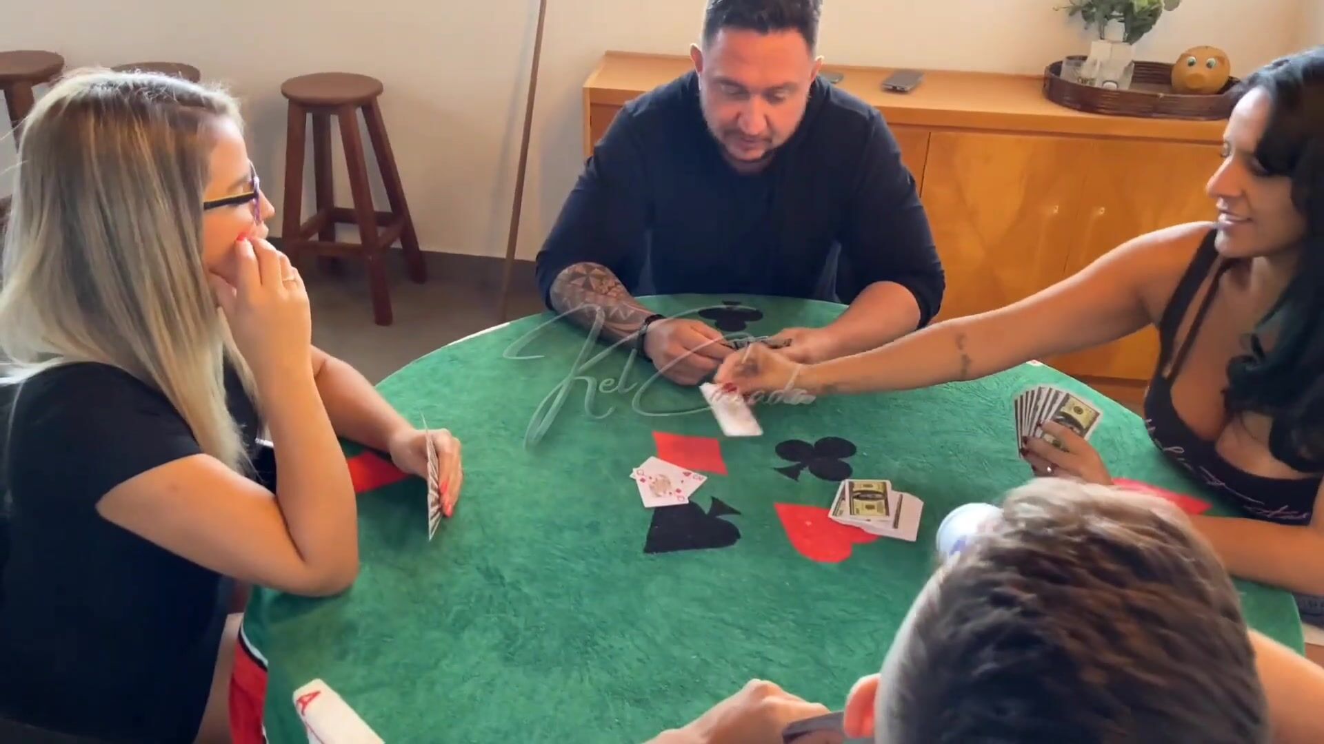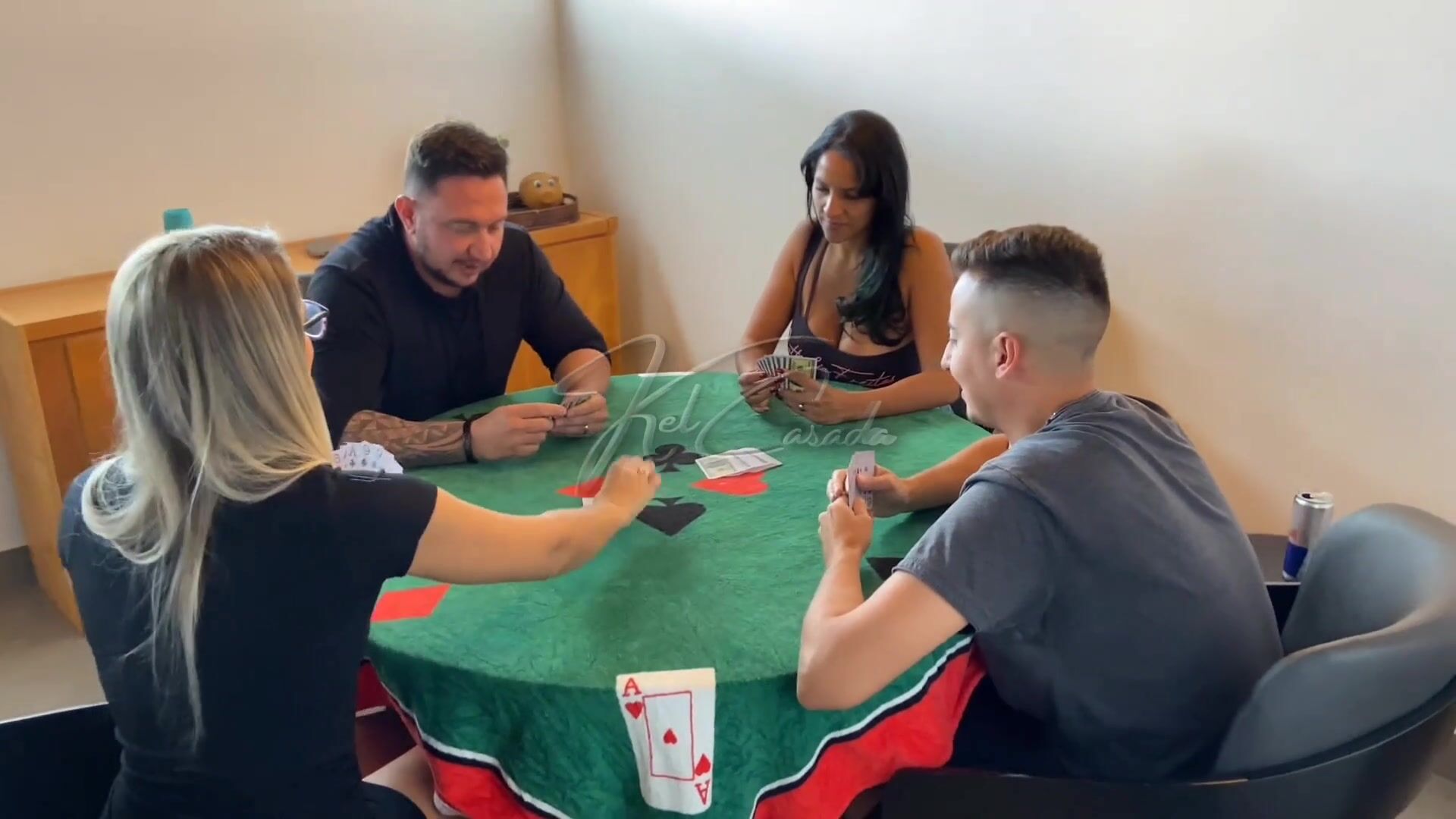 THE CARD GAME ENDED UP BECOMING A COUPLE EXCHANGE.