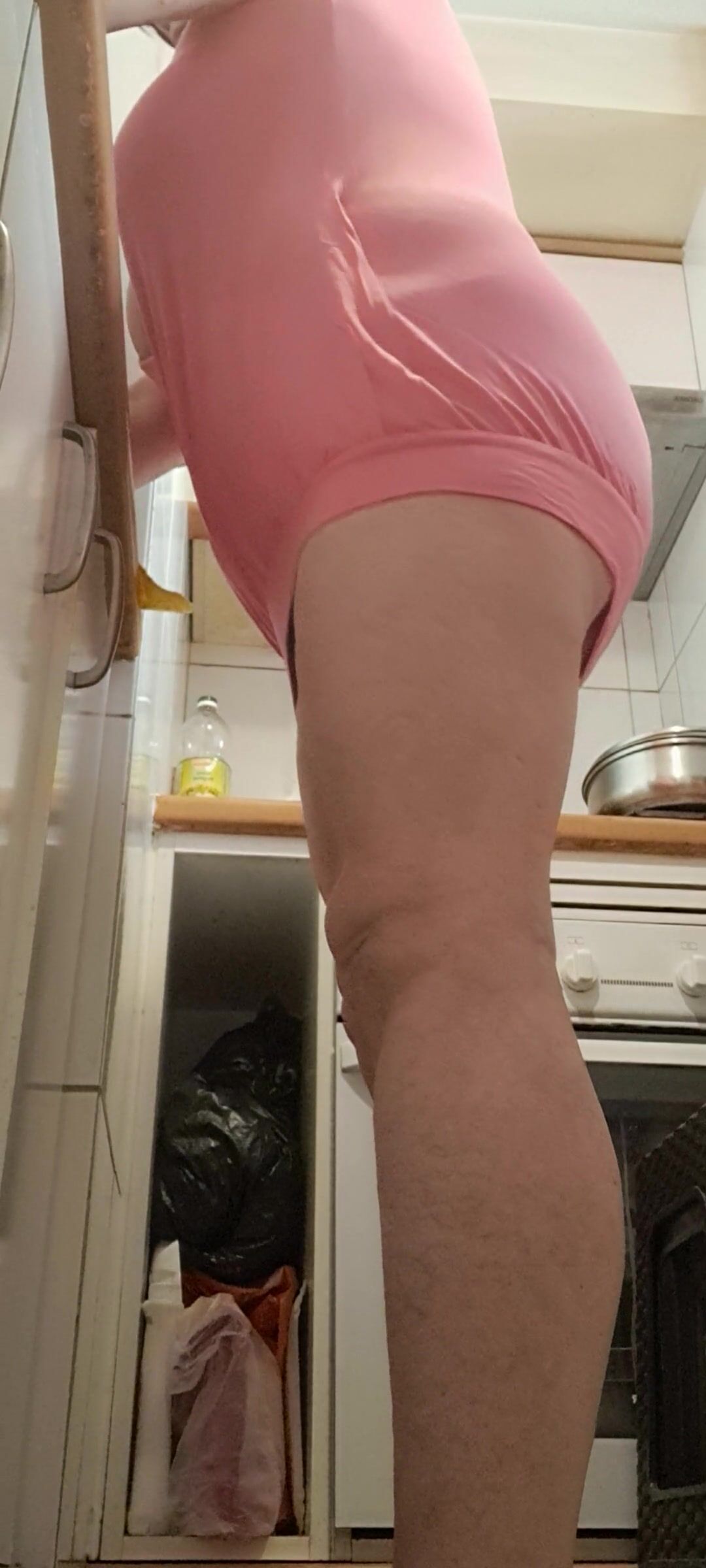 IN THE KITCHEN HALF-DRESSED
